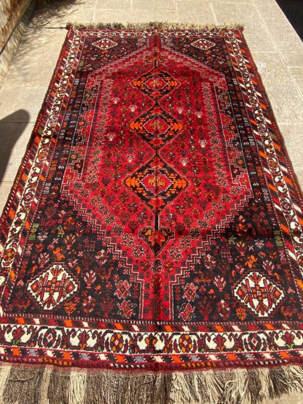 فرش قشقایی زمینه قرمز جز مواردی است که به دکور سنتی و از جمله دکور مینیمال نیز می اید . این فرش به دلیل این که محل بافت نداره و از بین رفت نه فقط فرش بلکه خود یهک سرمایه گذاری به حساب می اید و میتوان به عنوان فرش تا سالیان سال از ان استفاده کرد .