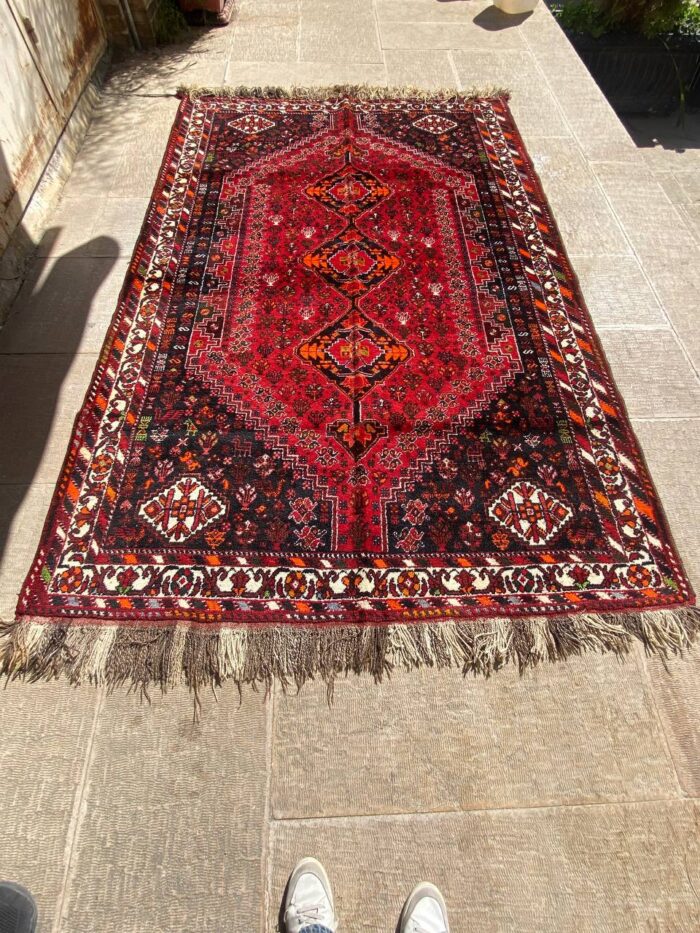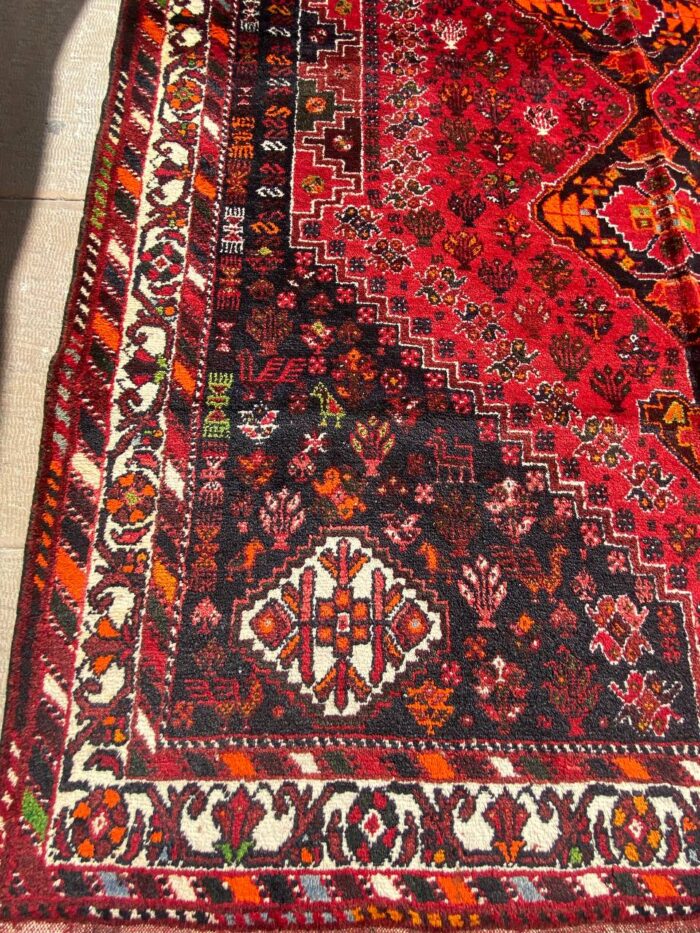 فرش یافته شده در داریون استان فارس نقشه و زیبایی بالایی بر خوردار است ولی این کار بافته شده از پشم دستریس و رنگ ثابت تمام روح فرش را به نمایان گذاشته است . زیبایی در سبک بافت فرش داریون با رنگ جذاب در این فرش به چشم میخورد .رنگ قرمز در منزل شما به تمام منزل شما یا دفتر کارتون جلوه میدهد .